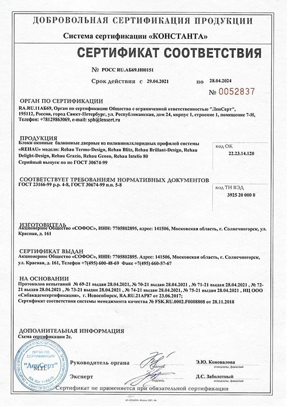 Использует только качественные, проверенные временем профили, фурнитуру и комплектующие